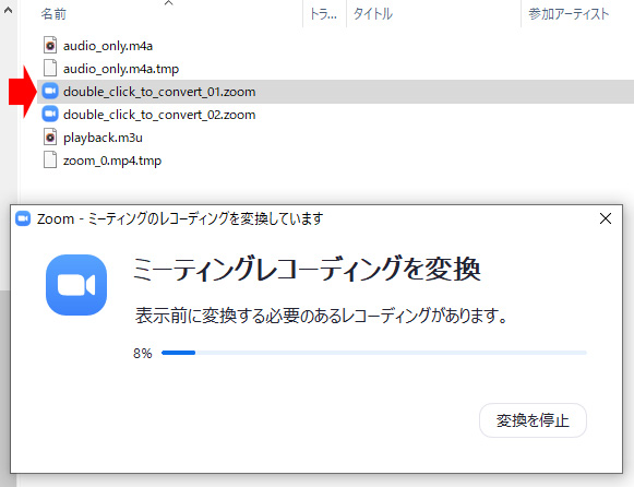 一度、この操作を行えば、次回からは、「double_click_to_convert_01.zoom」をダブルクリックするだけで、動画の生成が始まるようになります。