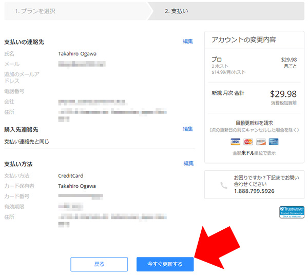 クレジットカードの確認が表示されるので、「今すぐ更新する」をクリック