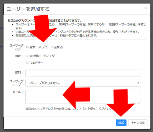 ホストにサインインするためのメールアドレスを入力し、「追加」ボタンをクリックします。