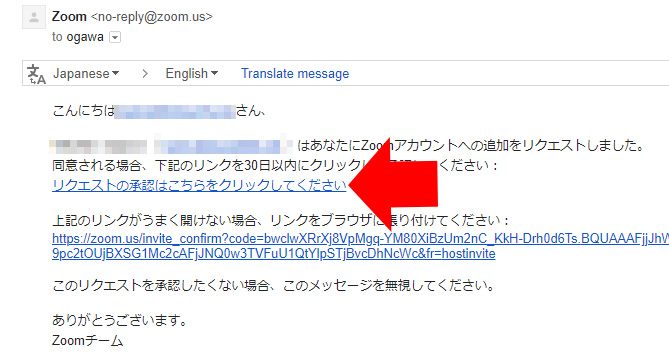 「リクエストの承認はこちらをクリックしてください」をクリックします。