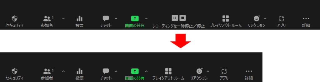 「ホストはクラウドの自動記録を一時停止/停止できます」のチェックを外して設定を保存すると、自動記録が開始されたミーティングやウェビナーには、レコーディングボタンが表示されません。