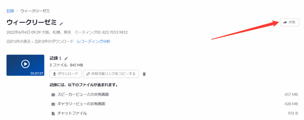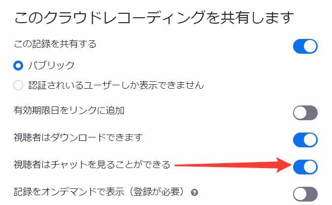 次に、クラウドに記録したチャットを動画と一緒に共有したい時。