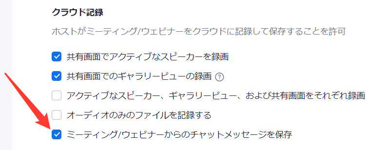 これで、クラウドに録画した時、チャットもクラウドに保存されます。