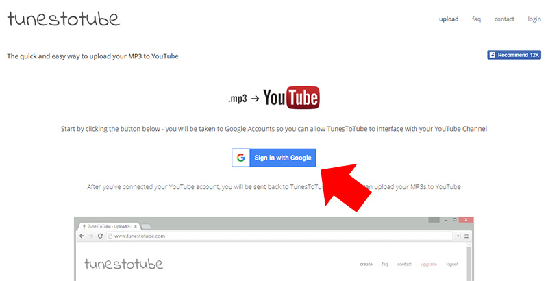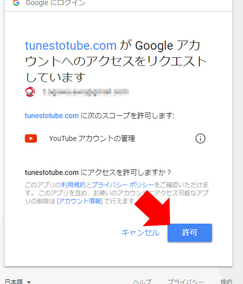 このサイト、https://www.tunestotube.com にアクセスし、Googleアカウントでサインインします。