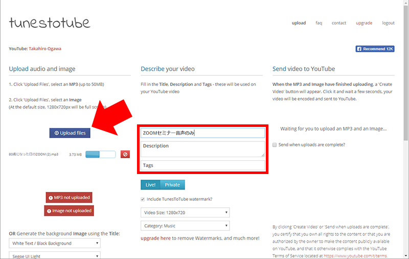 Youtubeにセミナーや講義の様子を音声のみでアップロードしたいとき、一番簡単な方法をご紹介します。