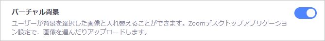 Zoomのマイアカウントから、「マイミーティング設定」で、バーチャル背景をONにします。