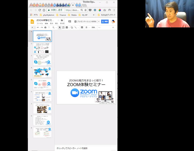 共有した資料の中に話す人のサムネイル画像が入っていたり・・・
