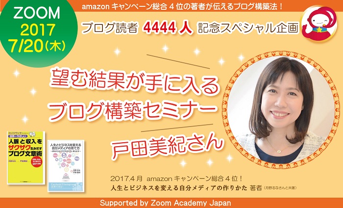 でも、今回のセミナーは、戸田美紀さんのアメブロ読者4444人記念スペシャル企画なんです。