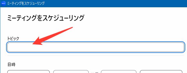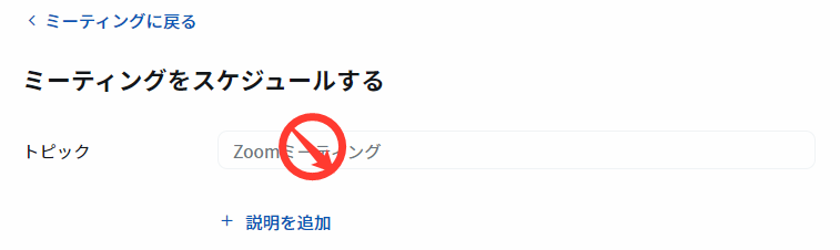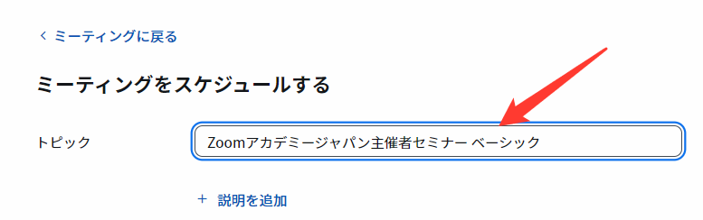 この状態で、ZoomミーティングやZomウェビナーをスケジュールすると、トピック名が変更できます。