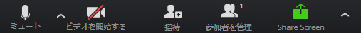 この状態で、WEBブラウザから Zoomに接続すると、下のボタンの殆どが、日本語になりました。