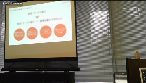 講師の立ち位置をちょっと工夫すれば、スクリーンと講師、どちらも映るのになー。