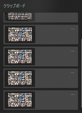 Zoomのミーティングルームを閉じたあとで、Windowsキー + V を押すと、クリップボードには、押した数だけの画像が保存されています。