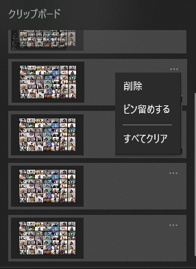 クリップボードに保存されている各項目の右上にある「・・・」をクリックするとメニューが出てきます。