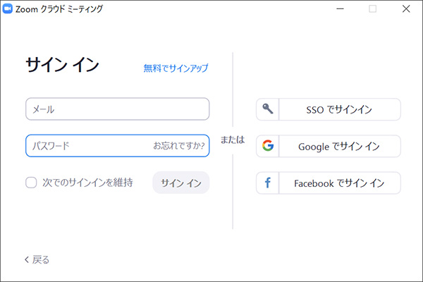 ミーティングを主催するときは、必ずサインインをする必要があります。