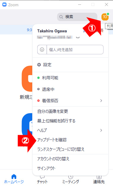 Zoomアプリにサインインしていないときは、アップデートができません。