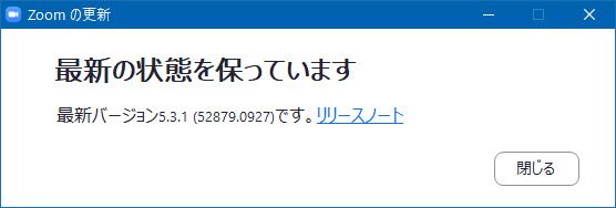 「 更新 」ボタンをクリックするとZoomの最新バージョンに更新されます。