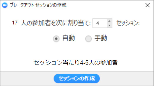• 参加者をいくつのセッション(部屋)に分けるのか?