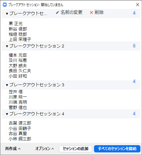 5. すべてのセッションを開始」で、ブレークアウトセッションを開始できます。