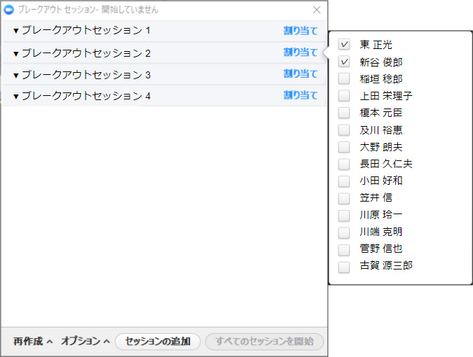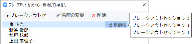 参加者を各小部屋に割り当てたあとにも様々な変更ができます。