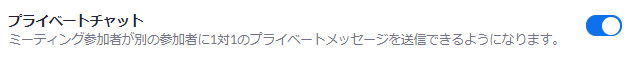 zoom.us の「設定」で、「プライベートチャット」をONに設定してください。