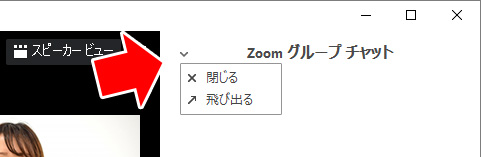 「飛び出る」を選択すると、チャットのウィンドーが切り離されます。