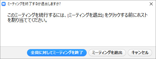 誰がホストになるか分からないので、ホストは、退出する前に意図した人にホスト権限を渡してからミーティングを退出しましょう。