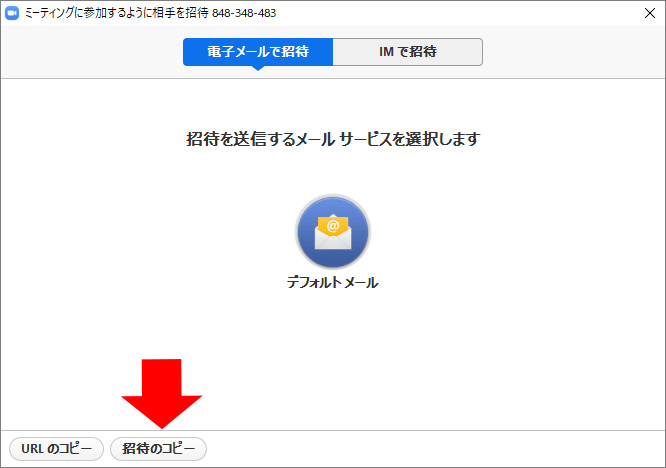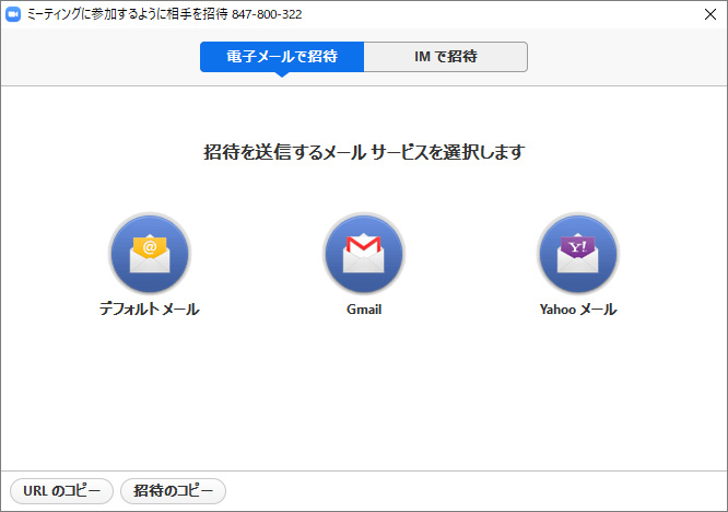 必要なのは、ミーティングIDだけなので、招待のコピーボタンは、あまり使用することはないかもしれません。