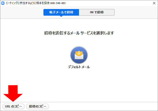 これをクリックすると、https://zoom.us/j/811042864 のような招待URLが、クリップボードにコピーされます。