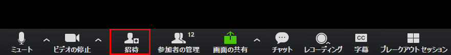 招待ボタンは、今、開催しているミーティングに、誰かを招待する時に使います。