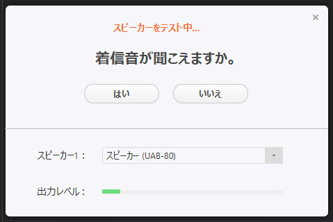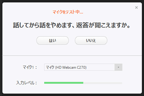 自分の声が、自分でよく聞こえるようであれば、「はい」をクリックします。