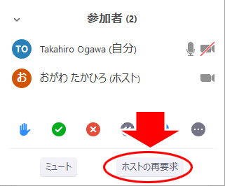 ただし、本来のホストは、自分でホスト権限を取り戻すこともできます。