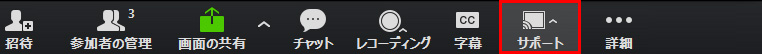 サポート」ボタンをクリックすると、3つの選択肢が表示されます。