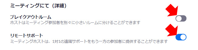 ブレークアウトルーム」と「リモートサポート」を両方ONにすることはできません。