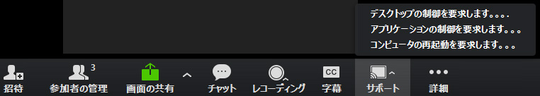 リモートサポート」は、ホストが参加者のパソコンをリモート制御することを要求できる機能です。