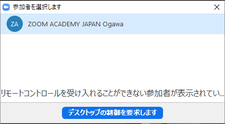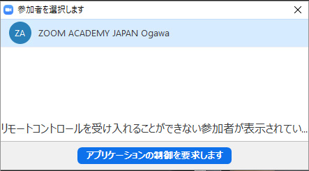アプリケーションの制御を要求します 」をクリックすると、相手に制御リクエストが送信されます。