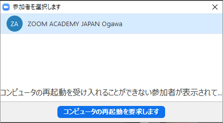 相手が「 コンピューターを再起動します 」をクリックすると、相手のパソコンが再起動されます。