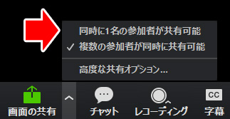 「複数の参加者が同時に共有可能」にチェックを付けると、一人が共有中でも、他の参加者が共有を開始することができます。