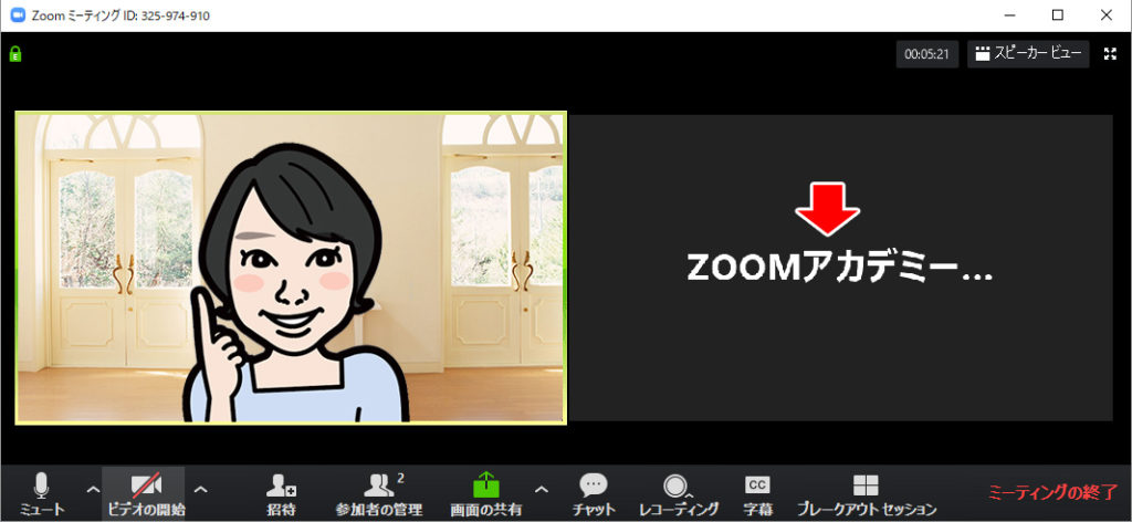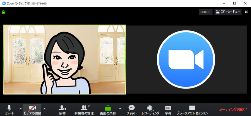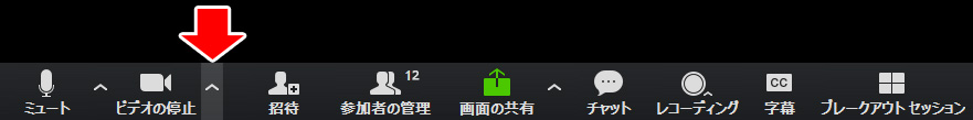 「ビデオの停止」をクリックして、自分の姿を見せないようにすることができます。