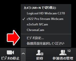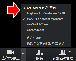 パソコンにカメラが複数接続されているときは、ここで、使用するカメラを切り替えることができます。