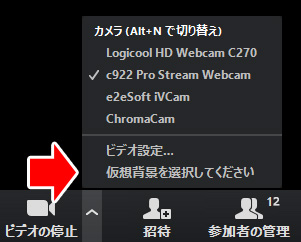 ※ この項目は、zoom.us の設定で、「バーチャル背景」がONになっていないと表示されません。
