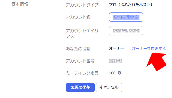 また、「オーナーを変更する」をクリックすると、このアカウントの所有者を変更することができます。