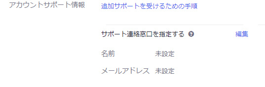 「アカウントサポート情報」で、名前とメールアドレスを入力して、サポート連絡窓口を指定することもできます。