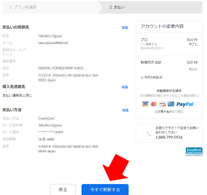 クレジットカードの確認をして、「今すぐ更新する」をクリックします。