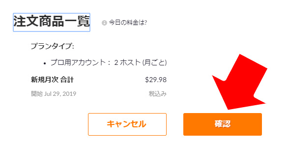 毎月引き落とされる金額を確認して、「確認」をクリックします。