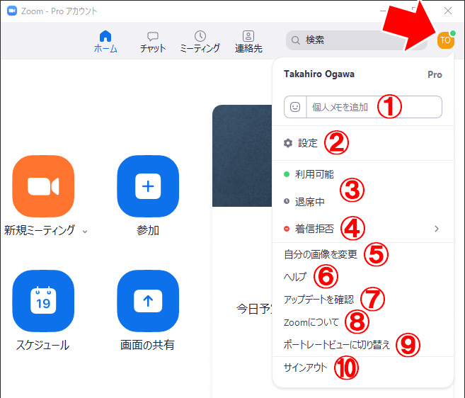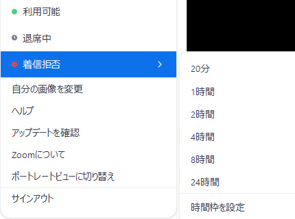 自分がZoomを使用中なのか、退席中なのかを、他のメンバーのスマートフォンのZoom画面や、パソコンのチャット画面などで、通知することができます。