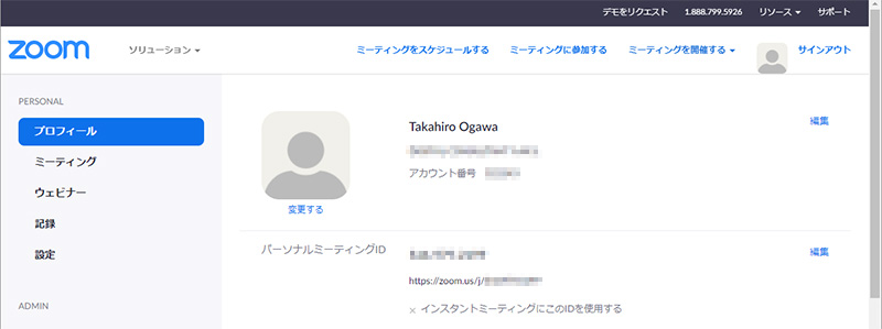 zoom.us のプロフィール設定がブラウザで開かれます。