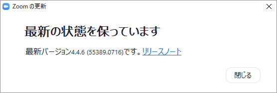 アップデートがある場合には、更新することによりZoomが、最新バージョンに置き換わります。