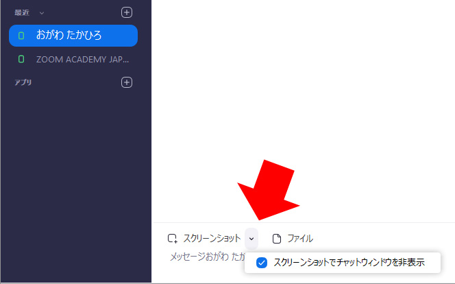 「スクリーンショットでチャットウィンドウを非表示」にチェックを入れると、チャットのウィンドーが消えて、パソコンの画面をキャプチャできます。