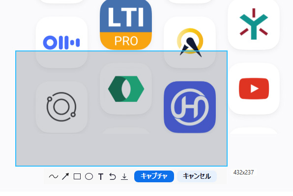 「スクリーンショット」をクリックすると、マウスで範囲を指定することができます。