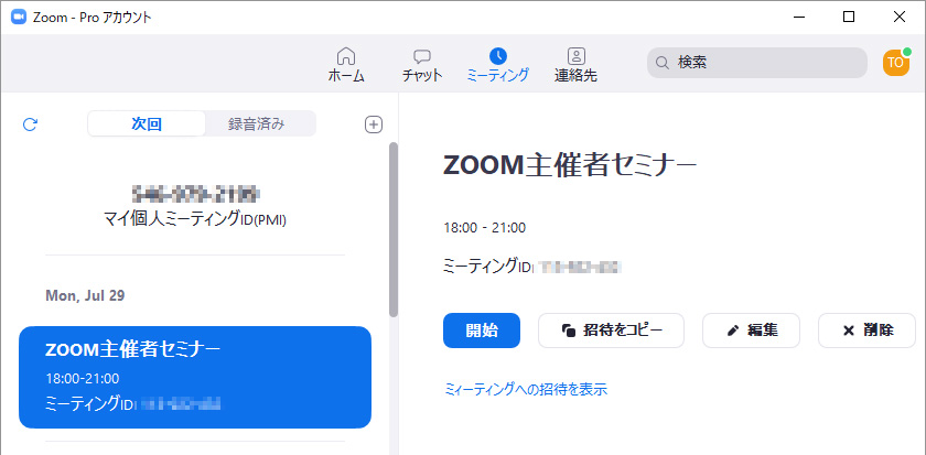 一旦削除したミーティングは、同じミーティングIDで再度作成することができません。